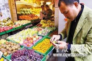 彭先生在水果店找尋可疑金橘