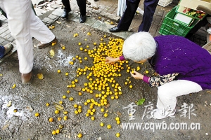 老板倒掉金橘引來(lái)市民圍觀