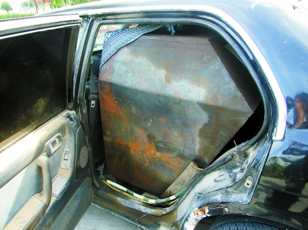 民警將兩人控制后查看轎車,一打開車門,一股刺鼻的柴油味撲鼻而來,車上到處都是油污,該車只有正副駕駛的座位,后排座位全被改裝成了一個長約2米,寬、高各有1米的大鐵箱,鐵箱子完全按照后排車廂的形狀制作,幾乎不留任何空間,嚴(yán)絲合縫地卡在后排。