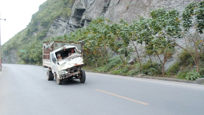 從來沒有看到過這么“牛”的駕駛員:國道319涪陵至武隆段,一輛剛剛被撞成“歪嘴”的貨車,以每小時四十至五十公里的速度行駛了20多公里!昨天,網(wǎng)友將最強悍司機開“腦殘車”的照片發(fā)到網(wǎng)上。