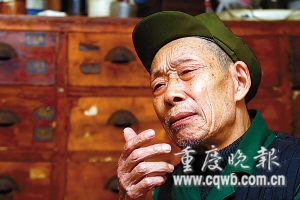 “陳珍福診所”位于石柱縣縣城新開路大安巷1號。24日,天氣微涼,人們穿上夾衣,陳珍福卻穿了兩件毛衣、一件棉背心:“涼不得,否則頭昏、胸悶,身上的舊傷還又痛又癢。”