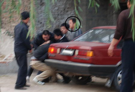 為進(jìn)一步證實(shí)搓麻者的身份,記者在鎮(zhèn)政府附近求證時(shí),遭遇不明身份人員搶奪攝影器材。為保護(hù)好攝影器材,三名記者遭圍攻。本報(bào)司機(jī)用車內(nèi)另一臺(tái)相機(jī)拍下?lián)寠Z現(xiàn)場(chǎng),不明身份者又來?yè)寠Z他的相機(jī),并將其右胸刺傷。