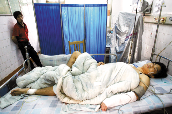 當(dāng)時負(fù)責(zé)抬張茂上救護(hù)車的員工稱,張腹部的刀傷非常深,員工們趕到的時候,其腸子都流了出來,“現(xiàn)在情況也不容樂觀”。