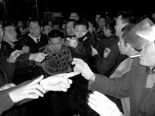 晚7時(shí)50分許,小雨越來(lái)越密。見(jiàn)談判無(wú)法生效,唐紅軍的大哥希望警方讓他們兄弟倆單獨(dú)談?wù)劇S浾唠[約地聽(tīng)到兩人的交談:“你要的房子好說(shuō),只要你把兒子放了……我們到一邊的茶鋪里去好好談?wù)劇?/p>