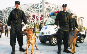 目前,奧運(yùn)中心區(qū)共有30名民警和60名保安員負(fù)責(zé)巡邏,每天還從巡邏隊(duì)調(diào)用兩只警犬。而隊(duì)里除了有20多輛電動(dòng)自行車、7輛普通警用電瓶車以外,還有2輛帶警犬籠的警用電瓶車,這在全市是獨(dú)一無二的。記者看到,這種電瓶車的后座上安裝著方方正正的警犬籠,平時(shí)民警駕駛電瓶車巡邏,警犬就趴在犬籠里跟著轉(zhuǎn)悠,車停下以后,民警再牽著警犬步行巡邏。而身穿作訓(xùn)服的巡警牽著威風(fēng)凜凜的德國(guó)黑貝警犬,也成為奧運(yùn)中心區(qū)里一道獨(dú)特的“風(fēng)景線”,很多游客都爭(zhēng)相與他們合影。