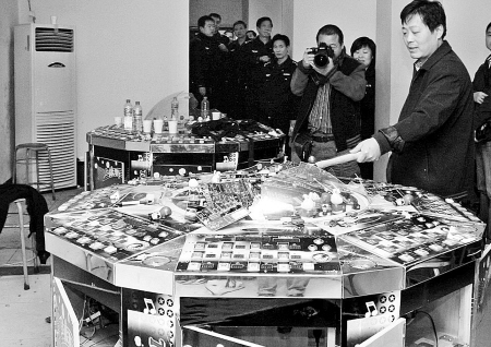 截至下午6時許,6個小組民警共搗毀賭博窩點12家,抓獲涉賭參賭人員151人,砸毀“動物樂園”等賭博機357臺。 (文/記者 張小乙 實習生 李輝晴 王婷 圖/記者 謝偉)
