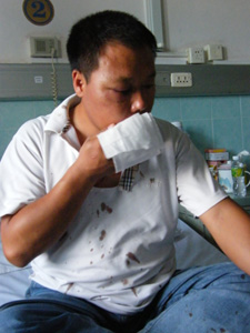 昨天下午,記者在?谑腥嗣襻t(yī)院見到受傷的田某。田某嘴唇已被縫合,但口水不停地往外流,其右眼圈紅腫發(fā)青。田某說,2006年4月,他通過老鄉(xiāng)認(rèn)識(shí)臨高人林某。林某對(duì)田某說,臨高縣某單位的房子要拆遷,他可以弄到該拆遷工程。當(dāng)年4月18日,田某從一個(gè)老鄉(xiāng)那里拿了5萬元拆遷工程墊付款給林某,兩人簽訂了工程承包合同。之后,林某以種種借口拖延,2年多時(shí)間過去,田某也未能承包到該工程。