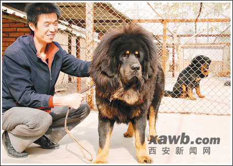 劉先生說,他今年夏天以近400萬元的“天價”從青海玉樹州一藏民手中購得此獒,為之取名“西部一號”。7月份“西部一號”來到西安,并很快適應了這里的環(huán)境。劉先生對它格外照顧,“西部一號”每次見了劉先生也上躥下跳十分活潑。然而,最近劉先生和飼養(yǎng)員卻發(fā)現(xiàn)“西部一號”不如原先活潑好動了。“有時候感覺它像人一樣很憂郁,起初我還以為它生病了,后來通過查資料我才明白,原來已經(jīng)兩歲的‘西部一號’已經(jīng)成年了,到了交配的年齡了,而十月前后恰是藏獒交配的最佳季節(jié),所以我想趕快給愛犬找個‘女朋友’!眲⑾壬f,一般的獒還著實配不上“西部一號”的身份,“必須找個與它條件相當?shù)牟亻,才能維持后代高貴的血統(tǒng)!