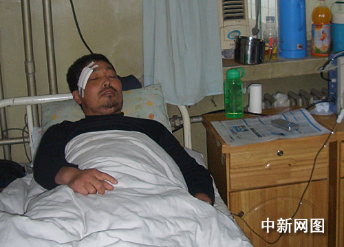 記者在石家莊市第二醫(yī)院骨科ICU病房見到霍辰輝時(shí),他的眼部因縫合傷口還蒙著紗布,頭部被打部位還沒有消腫,因腰椎骨折不能下床的霍辰輝無奈地講述著那天的遭遇。