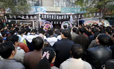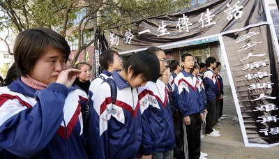 11月10日上午11時58分,榆中縣一悟路整條路面上哭聲一片。刺骨的寒風(fēng)中,一千余人自發(fā)排成長長的“人道”,送他們心中的好老師——突發(fā)腦溢血暈倒在講臺上的榆中縣第六中學(xué)數(shù)學(xué)教師景正翠最后一程。