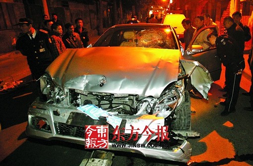 撞傷5人后,肇事奔馳依然奪路狂逃,先后又撞上兩輛出租車,撞翻25節(jié)護欄,民警追出7公里才將它查獲。昨天,肇事司機的母親趕到交警二大隊替兒子投案。