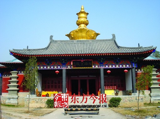 方鼎模樣的山門上方是少林寺方丈釋永信手書的“洞林大覺禪寺”六個鍍金大字。老人的視線前方,是一座已經(jīng)投入使用的仿印度風(fēng)格的大雄寶殿,大殿前方正在建造的高30多米的兩座鐘鼓樓,已顯氣勢。2008年11月3日上午,位于滎陽市賈峪鎮(zhèn)洞林村的洞林寺正在緊張施工。