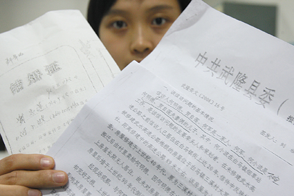 將何小波的妻子錯為“媽”的武隆委文[2008]16號文件 記者 張路橋 攝