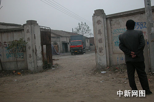 十二日下午四時(shí)許,記者在位于河北省安新縣老河頭鎮(zhèn)沈家坯村口一廢棄的糧庫門前見到,有多輛警車停放路兩邊,十幾名警員出出進(jìn)進(jìn),糧庫院內(nèi)停有一“危爆物品運(yùn)輸車”及一輛密封運(yùn)輸車,有幾名村民正在往車上裝東西。