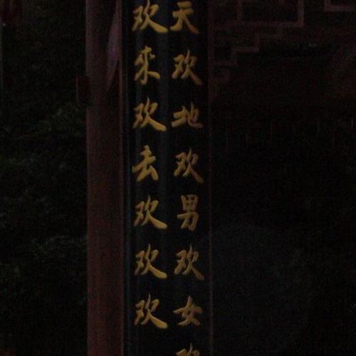 上周五,由網(wǎng)友“會(huì)飛的花”發(fā)的“峨眉山的這副對聯(lián)有點(diǎn)雷人哦”的帖子出現(xiàn)在517旅游網(wǎng)論壇上。帖子中,三張大尺寸的照片正是峨眉山新近迎客的溫泉?dú)g樂谷牌坊。第一張是古色古香的牌坊全景,牌坊上是一副較長的對聯(lián),在牌坊正中,“溫泉?dú)g樂谷”幾個(gè)字一語雙關(guān),既是景點(diǎn)名字,又是對聯(lián)橫批。第二張照片是上聯(lián)的特寫:天歡地歡男歡女歡一同歡歡來歡去歡歡歡。第三張照片是下聯(lián)的特寫:老樂少樂你樂我樂大家樂樂去樂來樂樂樂。帖子剛發(fā)出去幾分鐘,網(wǎng)友“阿郎 2008”即跟帖稱:“太有‘文化’了!” ,也有網(wǎng)友指出這副對聯(lián)出現(xiàn)在這里有點(diǎn)不太“嚴(yán)肅”。