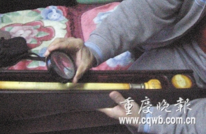 家住渝中區(qū)七星崗新德村223號的王川正,是市書法家協(xié)會會員和市工藝美術(shù)家協(xié)會會員,退休老師!斑@是一根祖?zhèn)鞯镍f片煙槍,乳黃色的象牙材質(zhì),長41厘米,比拇指略粗(如圖)!蓖醮ㄕf,父親把煙槍傳給他時,重復(fù)祖父訓(xùn)誡:無論多大家業(yè),千萬莫吸鴉片。為增加象牙煙槍的收藏價值,半年前,王川正決定在煙槍上刻出鴉片戰(zhàn)爭的歷史!拔也殚喆罅渴妨,湊齊13篇林則徐嚴(yán)禁鴉片奏案、虎門銷煙圖等,用20倍放大鏡和比繡花針小10倍的刻刀,每天堅持刻畫,如今終于完成!蓖醮ㄕf,近兩萬字的禁煙史已刻上煙槍上長12厘米長、寬1.5厘米的面積。