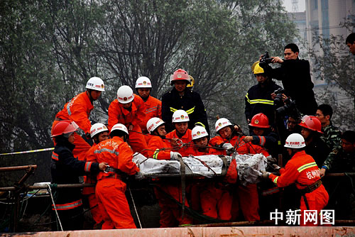 圖為消防救援人員從坍塌的坑內(nèi)救出一人。作 者:李玉飛