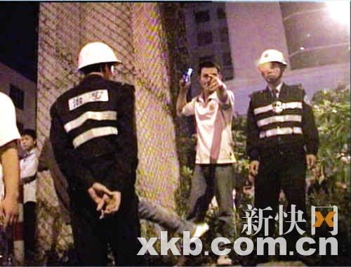 記者凌晨3時多趕到現(xiàn)場,看到有10多輛的士?吭谑掳l(fā)路口。有10多名保安在現(xiàn)場維持秩序,交警也在路邊拉起了警戒線。記者看到有兩名臉色通紅、散發(fā)著酒氣味的中年男子正對著在場的10多名的士司機罵罵咧咧,并不停地指手畫腳,口出狂言。