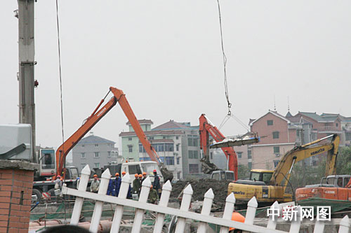 中新網(wǎng)杭州11月17日電(記者 柴燕菲 江耘)今天,記者在施救現(xiàn)場(chǎng)看到,施救人員在地鐵坍塌現(xiàn)場(chǎng)將第五具遇難者尸體打撈上來。