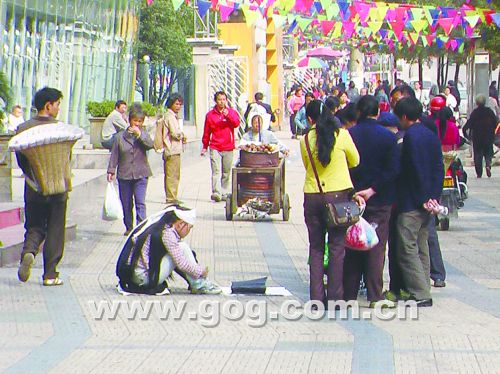 但是,據(jù)拔打本報熱線的吳婆婆說,前幾個月,她在貴陽服務(wù)大樓附近也看見這兩姐妹用同樣方法乞討。當(dāng)時她還給了兩人10元錢。沒想到她們現(xiàn)在又來到這里乞討,“肯定是騙子”。