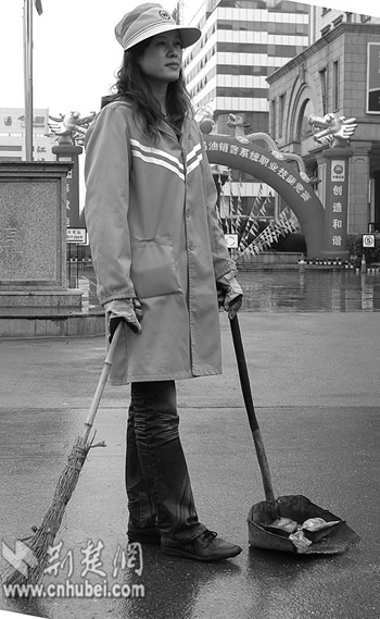 長相秀麗,染發(fā)、戴墨鏡,穿著時尚的靴褲和長筒高跟皮靴——這個樣子,是不是與你印象中的環(huán)衛(wèi)女工相去甚遠(yuǎn)?