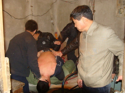 11月20日凌晨2時(shí)許,警方已經(jīng)完成對(duì)全部抓捕對(duì)象的布控。抓捕條件成熟,指揮部一聲令下,抓捕行動(dòng)同時(shí)開始。犯罪嫌疑人孫景成、安建利、胡軍發(fā)、劉志偉、呂二利等相繼被抓獲。凌晨6時(shí)許,民警將嫌疑人蘇金光抓獲,并在其租住處搜出三把弓弩、五把砍刀、兩把斧頭、一柄魚叉。經(jīng)確認(rèn)這些全部都是作案工具。
