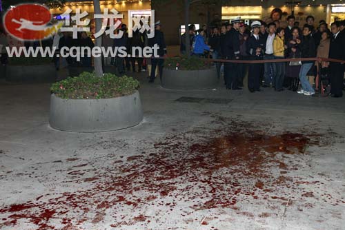 今晚(25日晚)9:10分左右,重慶市江北區(qū)北城天街(肯德基、遠(yuǎn)東百貨中間的廣場(chǎng))發(fā)生一起慘案:一女子被一持刀男子,連砍數(shù)刀倒在血泊中,之后該男子舉刀自殘。
