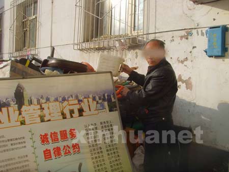 在4號樓一個單元入口處,一堆4米見方的雜物堆在整潔的小區(qū)內顯得有些突兀。物業(yè)人員說:“11月3日,一群人趁物業(yè)辦公室沒有人,直接將鎖砸開,把這些辦公用品全搬出來了。現在里面還有個人在里面占著房子。”