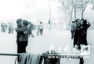 很巧的是,南京大學(xué)教攝影的謝白老師寄給本報的老照片里,也有一組關(guān)于“交際舞”的。那是在80年代后期90年代初,彼時“交際舞”早已不是青年男女用來交友、展示青春釋放活力的時髦玩意,越來越多的中老年人開始喜歡上了這種能夠舒緩身心愉悅性情的活動,于是“交際舞”開始演變成一種全民健身式的運(yùn)動項(xiàng)目。在此背景下,上個世紀(jì)80年代末的幾個清晨,謝老師在南京的和平廣場、南大操場等地,留下了許多中老年男女“聞雞起舞”的愜意身影。(張磊)