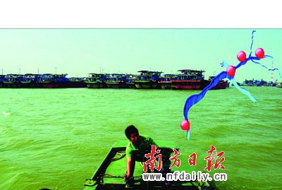 大貨船在北江上一字排開,船家們要求嚴厲打擊河盜。