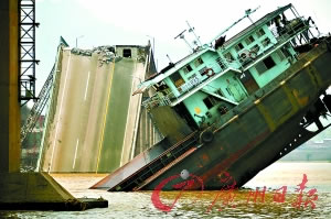 九江大橋坍塌事故現(xiàn)場(本報資料圖片)