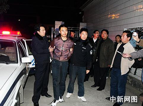 12月10日凌晨在文集鎮(zhèn)胡港村劫財殺人的犯罪嫌疑人黨奎,在逃往武漢轉(zhuǎn)車潛逃外地途中,被公安民警抓獲。圖為當晚7點50分,黨奎被公安民警押回到鐘祥時的情景。 攝影:趙云福