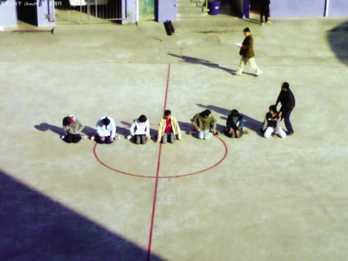 學(xué)生:幾個(gè)同學(xué)“跪”在操場(chǎng)