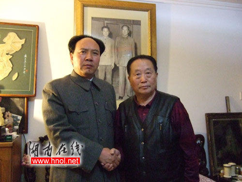 毛主席特型演員張瑞奇與毛主席貼身衛(wèi)士周福明合影留念