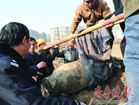 聽說挖掘機(jī)刨出個“煤氣罐”,12月13日晚11點,濟(jì)南濟(jì)安街附近一建筑工地上的張師傅跑去看熱鬧。這“煤氣罐”挺怪:兩頭尖,中間胖。有人猜測:“不會是炸彈吧!”民警趕來查看后,現(xiàn)場豎起牌子:“危險!”