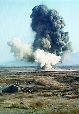 下午1點,排爆人員架設(shè)通電導(dǎo)線,在彈體周圍放置肥皂塊大小的TNT炸藥,每塊200克,用了50塊。