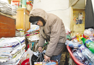“老伴兒撿廢品去了,你們等會!78歲的毛大娘招呼記者。