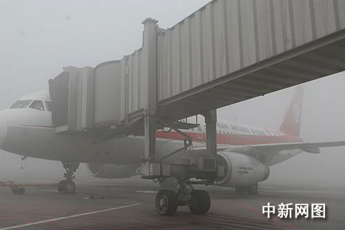 濃霧16日再鎖成都機(jī)場(chǎng),能見(jiàn)度極低,109個(gè)航班被延誤。 作 者:呂俊明
