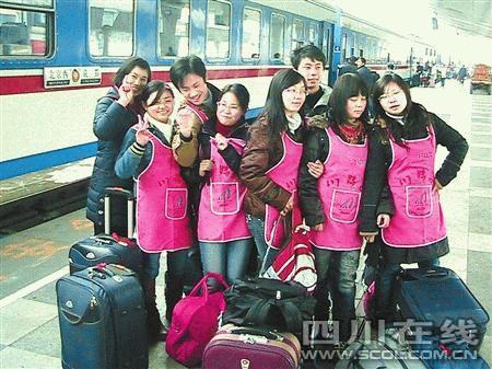 隨著春節(jié)臨近,北京家政市場保姆荒的情況也越來越嚴(yán)重。昨日上午11時(shí)許,川妹子家政公司組織的15名進(jìn)京家政人員登上了開往北京的列車。保姆中有8人是大學(xué)生,其中7人是家政專業(yè)的大學(xué)畢業(yè)生,1人是因新近公司倒閉而失業(yè)的白領(lǐng)。明日,他們將走進(jìn)北京市民的家庭,從事高端家政服務(wù),年薪在2萬元左右。