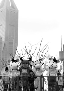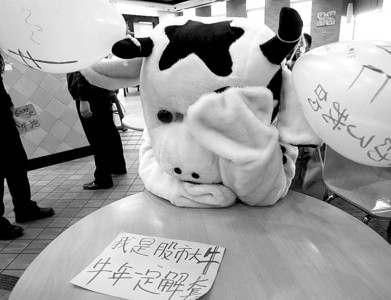 4名求職屢屢受挫的年輕人,在踏上回家過年的列車前,突發(fā)奇想地租來卡通牛的服裝,扮成“牛人”走上街頭,為路人送上新年祝福。昨天,在徐家匯、人民廣場、南京東路步行街等鬧市區(qū),這群“牛人”所到之處引來市民的友善擁抱和熱情鼓勵。