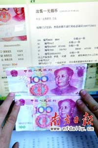 昨日,記者在一個“專業(yè)假幣”的新浪博客上看到,該博客2008年5月25日和26日發(fā)布的兩篇文章,對5元至100元面值的假幣明碼標價售賣。編號為HD90和HB90開頭的100元假幣售價為18元/張,編號為FA17的50元假幣售價為12元/張,編號為FA7667和FC3358的20元假幣售價為7元/張……