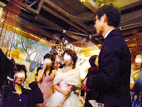 約晚6時(shí)30分,等候在三樓的富豪男士們被要求站在大紅地毯上,向著門口鼓掌迎接可能成為他們未來太太的靚女們。主持人逐個(gè)介紹手握一枝玫瑰、臂貼號(hào)牌魚貫入廳的淑女。