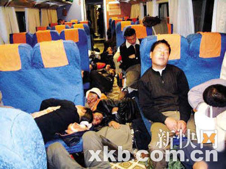 這位網(wǎng)友“南慕整容”在天涯社區(qū)的這篇題為《說(shuō)說(shuō)你坐春運(yùn)火車(chē)的事》的帖子中,講述了坐火車(chē)的感受與故事。他認(rèn)為坐火車(chē)的一大特點(diǎn)是臟,尤其是春運(yùn)。他描述道:“平日里我們用人均面積來(lái)算人居環(huán)境,到了火車(chē)上得換成人均體積,擠過(guò)火車(chē)的人都有同感,座椅底下是人,行李架上是人,廁所能擠進(jìn)去六七個(gè)人。我坐臥過(guò)的就有地板、座椅頂端、洗手臺(tái)子、車(chē)廂接口處的垃圾袋子、行李架,無(wú)所不用其極。偶爾也有幸福的時(shí)候,有次去廣州,一個(gè)十七八歲的俊俏大姑娘實(shí)在熬不住,趴在我大腿上睡了一晚,來(lái)接站的哥們聞之艷羨不已,他不知道,我的腿都給壓腫了!