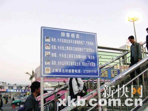 豎于沙井客運(yùn)中心附近,工作人員稱只為提醒旅客不受騙