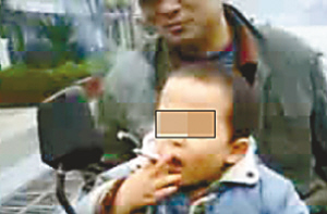 這段長(zhǎng)達(dá)四分半鐘的視頻是一名網(wǎng)友十天前發(fā)布的,聲稱是在萬(wàn)州周家壩現(xiàn)實(shí)攝錄,視頻上面一名兩三歲的小男孩坐在一輛大人的摩托車前部,在一群成年人一陣“燒起”的起哄聲中,開(kāi)始表演點(diǎn)火抽煙。