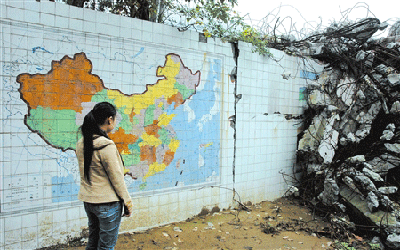 “真沒有想到,斷壁殘?jiān)谋贝ㄖ袑W(xué)廢墟內(nèi),竟然還有這么大一塊完好的圖像……”昨日上午,網(wǎng)友羅先生報(bào)料稱,他和朋友在北川中學(xué)廢墟祭奠時(shí)發(fā)現(xiàn)了一幅完整的中國地圖,而周圍墻面都遭到了重創(chuàng),堪稱奇跡。