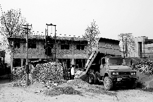 昨日,這里已經(jīng)看不出村落的原貌,取而代之的是正在建設(shè)中的一座座高約4米的二層小樓,砂石、水泥、紅磚堆積在建筑周?chē),工人們正在樓體內(nèi)外忙碌著。他們說(shuō)受雇于房東,并不清楚原地拆建的原因。