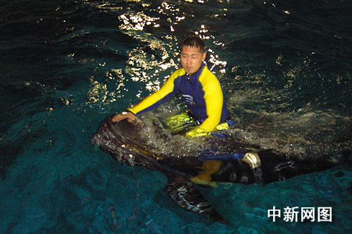 中新網(wǎng)杭州4月13日電(見(jiàn)習(xí)記者 王磊)2009年4月底,第五屆中國(guó)國(guó)際動(dòng)漫節(jié)即將在浙江杭州正式拉開(kāi)帷幕,據(jù)悉,杭州極地海洋公園將首次與動(dòng)漫節(jié)進(jìn)行合作,屆時(shí)將首次推出領(lǐng)航鯨表演,日前,前期訓(xùn)練正在緊鑼密鼓的進(jìn)行中,據(jù)極地海洋公園有關(guān)負(fù)責(zé)人介紹,領(lǐng)航鯨表演在世界上也數(shù)首次,在中國(guó)國(guó)內(nèi)更是首例,動(dòng)漫節(jié)期間兩只領(lǐng)航鯨將會(huì)為游客們將帶來(lái)一場(chǎng)別開(kāi)生面的視覺(jué)盛宴。海洋公園有關(guān)負(fù)責(zé)人透露其中一項(xiàng)表演是工作人員騎在鯨魚身上環(huán)場(chǎng)一周,那名工作人員將幸運(yùn)的成為了中國(guó)首位“鯨騎士”。