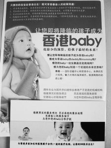 他介紹,他們公司在深圳、香港都有專門的人員負(fù)責(zé)赴港生子的具體事項(xiàng)。具體的流程是:懷孕3個(gè)月左右時(shí),女方到深圳由他們公司的工作人員安排去香港的醫(yī)院產(chǎn)檢,領(lǐng)取預(yù)約證,繳納費(fèi)用;在預(yù)產(chǎn)期前20天左右,通過深圳到香港,進(jìn)醫(yī)院待產(chǎn);孩子出生的第二天,就可辦理出生證、回鄉(xiāng)證、護(hù)照、身份證等證件,然后就可帶著寶寶返回了。