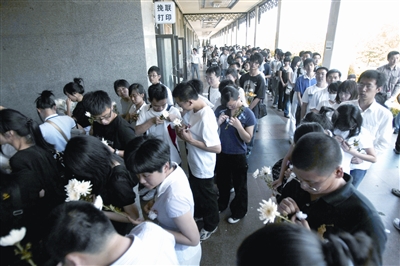 告別的隊伍緩緩移動,大廳內(nèi)哀樂低回,從譚卓的遺體前陸續(xù)走過的人們,眼眶紅紅的,有些早已泣不成聲。譚卓的父母一一向他們點頭,表達無言的感謝。